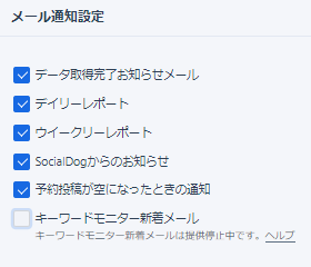 SocialDogからのお知らせをメールで受け取れます。受け取れる通知の内容は以下のとおりです。